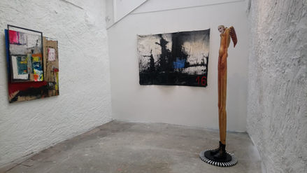 Charlotte peint sur des tissus et cherche a établir une relation avec dimensions, volumes et lumière. Cédric s’intéresse aux rapport de la déambulation à travers les objet qu’il sculpte. Quant à Théo, ses petites torsade en faïence cuite constituent le socle structurel de ses sculpture.